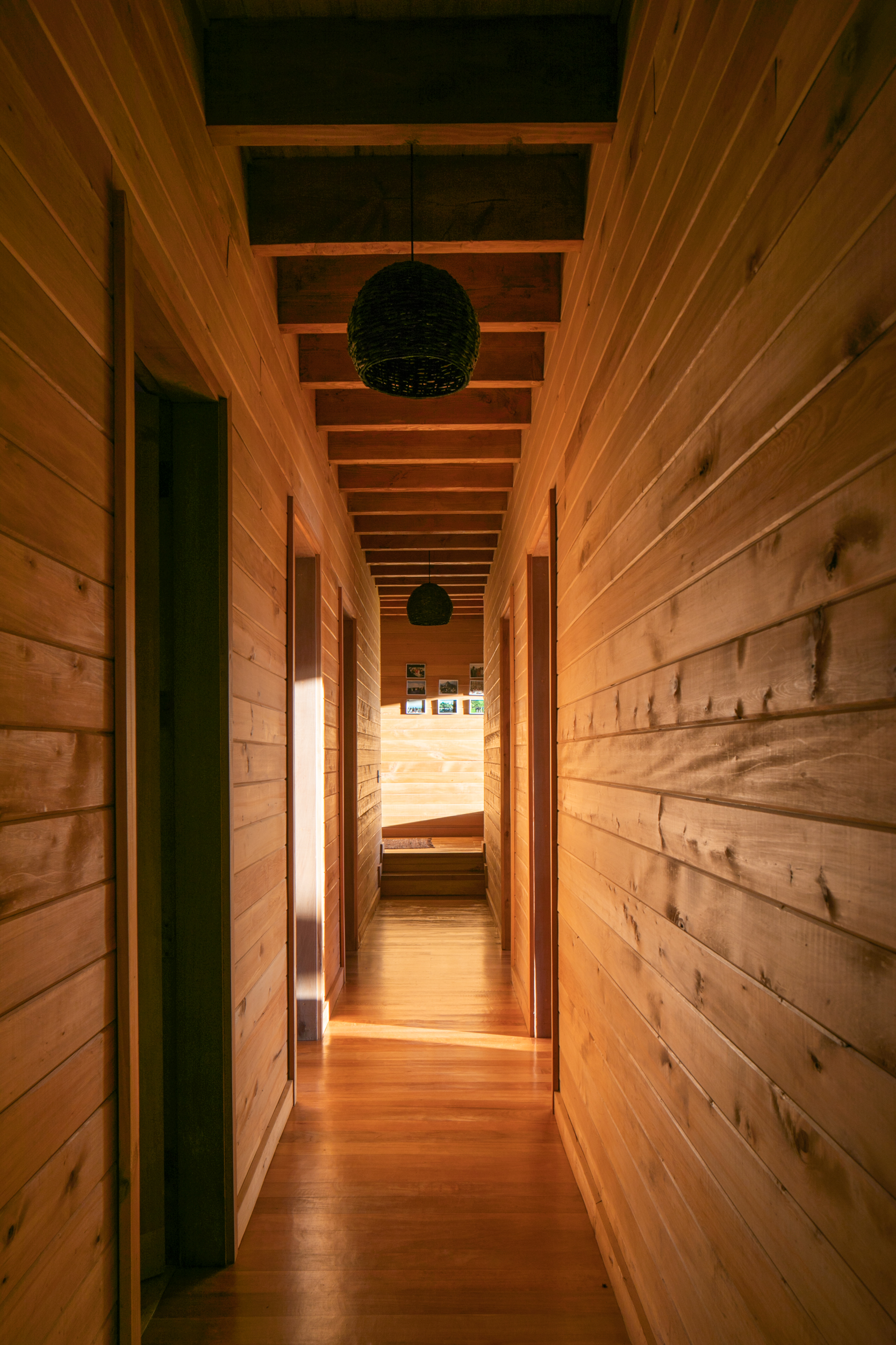 La casa rescata elementos y materiales propios del lugar en una propuesta simple que busca generar espacios cálidos orientados a las mejores vistas del terreno.