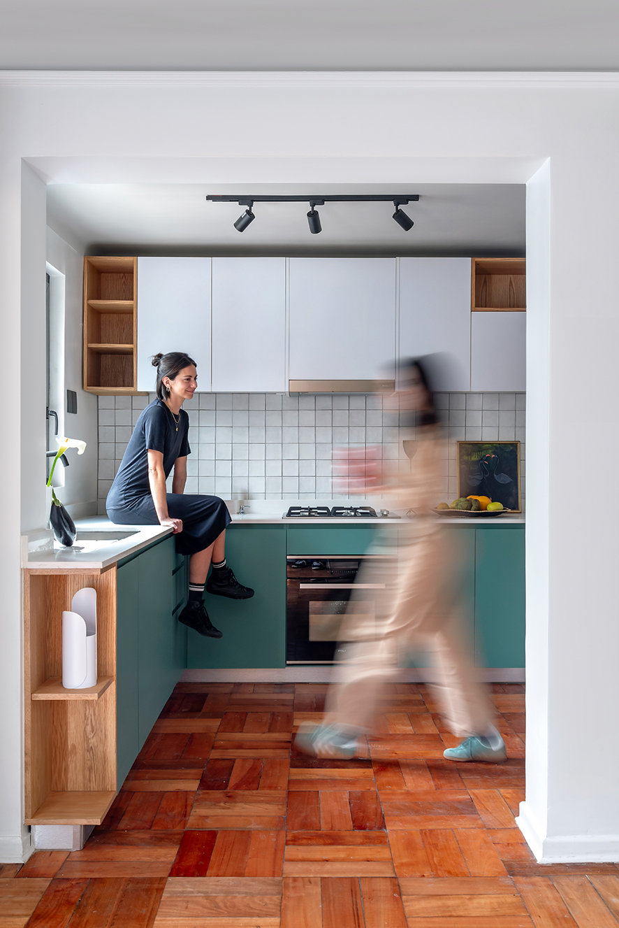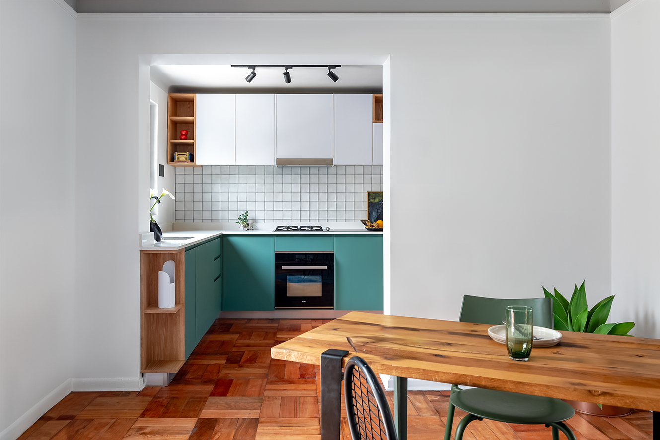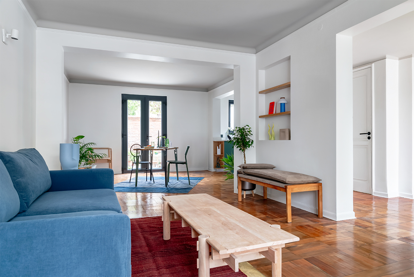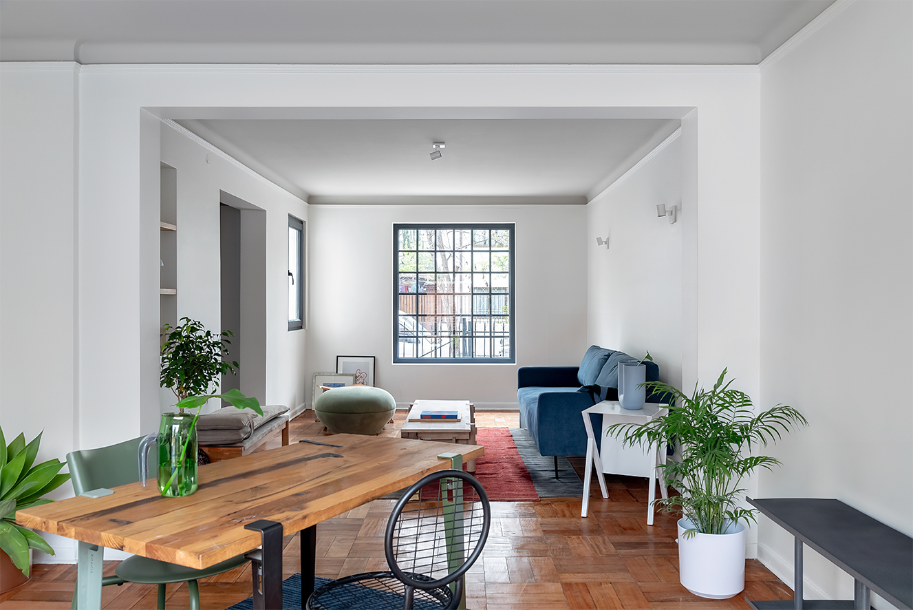 Se integró la cocina al living-comedor para potenciar la proyección de luz natural a los espacios y se recuperaron el piso de parquet, las puertas originales, el antejardín y jardín interior.